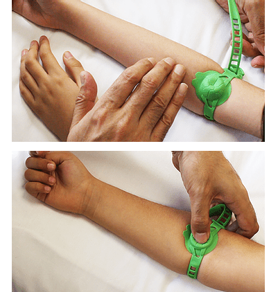Ultimately relieves time resource of the practitioner and improves the child’s experience. It is pain saving, cost saving, time saving and face saving with a quick release disposable tourniquet.